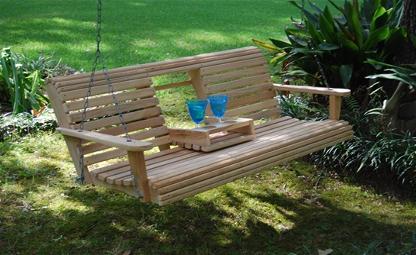 Cypress Moon Console Porch Swings Cypress Moon creates beautiful, unfinished wooden furniture that is designed for strength and weather tolerance. Handmade from Louisiana Cypress trees, these Console Porch Swings have a flip-down console in the middle to place your drinks on! As with all Arcadian Outdoor Furniture, price includes FREE SHIPPING!