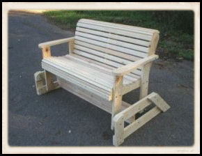 The Cypress Moon Wooden Gliders These are handmade, cypress gliders. Outdoor Gliders are great swings, because there is no hanging installation required, making it easy to put anywhere you want it. The seat and back are the same design as the Rollback, made as a glider swing instead of a hanging one. Notice the sweeping curves on the swing of the glider. This is a fancier style swing, contoured for extra comfort.
