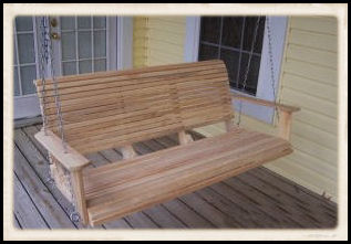 The Cypress Moon Porch Swings Cypress Moon creates beautiful, unfinished wooden furniture that is designed for strength and weather tolerance. Handmade from Louisiana Cypress trees, these Wooden Porch Swings are naturally beautiful and will accent any front porch! Cypress Moon swings are heavily constructed with slats that are 1 inch thick and 1 3/4 inches wide routered (no sharp edges). Each slat is finish sanded on all sides and ends for your safety and comfort . In addition, these swings have 4 supports across the back AND 4 across the bottom. Few porch swings are built with this kind of quality support system! Each purchase includes all necessary hardware for a standard porch installation: S-hooks, chains, bolts, and eyebolts. As with all Arcadian Outdoor Furniture, price includes FREE SHIPPING!
