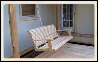 Cypress Moon creates beautiful, unfinished wooden furniture that is designed for strength and weather tolerance. Handmade from Louisiana Cypress trees, our wooden porch swings and wooden gliders are naturally beautiful and will accent any front porch or yard! Each handmade swing includes all necessary hardware for a standard porch installation: S-hooks, chains, bolts, and eyebolts. To see their beautiful Cypress Furniture, go to www.CypressMoonPorchSwings.com.