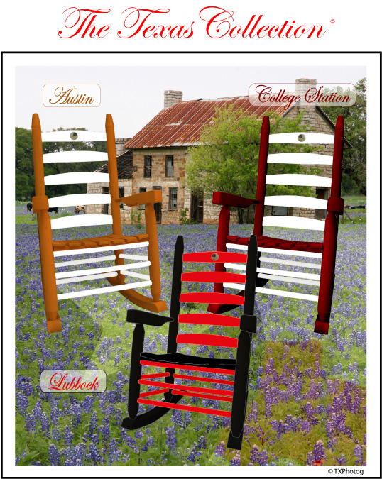The Fire Maple Rocking Company loves Texas! Because it's such a unique state, we created this unique line of rockers we call the Texas Collection. There are six models to choose from, each one named for different cities in the Lone Star State: